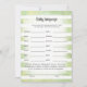 Profitez de jouer à ce jeu de baby shower Baby Language sur douce, vert et blanc arrière - plan de rayures d'aquarelle. Mignons, bronzés, lapin lapin sur le dos avec des modèles créés pour vous.