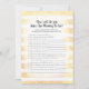 Profitez de jouer à ce jeu de baby shower Qui connaît maman-à-être le mieux? sur douce, jaune et blanc arrière - plan de bandes d'aquarelle. Mignons, bronzés, lapin lapin sur le dos avec des modèles créés pour vous.