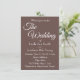 Style simple, faire-part de mariage qui comprend un arrière - plan de couleur taupe tendance ainsi que les futurs noms de mariée et de mariée et la date de l'événement, l'heure, l'emplacement et le registre imprimé en blanc, stylisé. Personnalisez votre faire-part de mariage en remplaçant l'info par la vôtre. Sélectionnez le style et la quantité de papier d'invitation. Conçu pour coordonner avec notre collection Taupe Simple Style Mariage.
