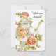 Sur le devant se trouve une belle théière rose aquarelle avec les mots "Vous êtes invité". Reverse side dispose d'un teacup rose aquarelle avec détails d'invitation. Personnalisez-vous selon vos spécifications.