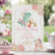Tea-Rex Tutu Party Dinosaur Girl Rose 3e anniversaire Invitation Elégante fille Anniversaire Tea Party Invitation, rose & blanc Fleurs Parties scintillant d'or Invitation