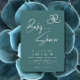 Invitation Teal Elegant Script Baby Shower Heart Footprints