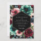 Rich jewel-toned blooms in deep teal, burgundy, and blush create an opulent, romantic atmosphere. This design evokes a sense of luxury with its dramatic floral arrangement, perfect for an elegant affair.
