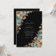 This design features a striking contrast of deep teal and antique gold blooms. Lush floral arrangements in aquamarine hues intertwine with richly toned golden foliage, creating an atmosphere of elegant sophistication. The artful composition evokes a vintage charm suitable for a memorable occasion.