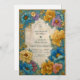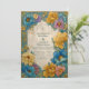 This bold botanical design features richly saturated teal, gold, and blush florals arranged in an ornate vintage frame. The textured parchment background adds an elegant antique feel, giving the layout a timeless and artistic quality. Detailed illustration, vibrant color, and soft shading create a dramatic floral border that beautifully highlights your wedding details. Personalize the wording to craft a luxurious keepsake that reflects your celebration’s unique style.