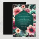 This design features a rich tapestry of deep teal and vibrant pink blooms, interspersed with soft coral and blush petals. Lush, dark foliage anchors the opulent floral arrangement, creating a sophisticated and moody aesthetic. The mood is romantic and dramatic, perfect for a stylish affair.