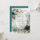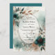 Featuring deep teal florals, warm bronze leaves, and soft watercolor accents, this design blends bold sophistication with a natural, romantic touch. The ethereal balance of rich color and delicate detail makes it ideal for modern weddings, forest celebrations, or couples who love a unique, luxurious palette.