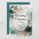 Featuring deep teal florals, warm bronze leaves, and soft watercolor accents, this design blends bold sophistication with a natural, romantic touch. The ethereal balance of rich color and delicate detail makes it ideal for modern weddings, forest celebrations, or couples who love a unique, luxurious palette.