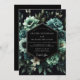Experience dramatic romance with this lush, moody botanical design. A sophisticated palette of deep teal, seafoam green, and cream blossoms pops against a dark background. The exquisite floral arrangement features painterly peonies, roses, and unique succulents for an unforgettable and elegant atmosphere.