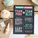Des amis Invitations et la famille pour savoir si votre nouveau bébé est un garçon ou une fille avec ce mignon bébé moderne sexe révèlent l'invitation de la fête. Le design présente un thème sportif Team Pink ou Team Blue avec un amusant mélange audacieux de typographie dans les tons blanc, rose et bleu sur un faux arrière - plan de texture de tableau noir imprimé. Cliquez sur le bouton Customiser pour modifier les polices, les couleurs et déplacer du texte pour créer votre propre modèle unique d'invitation.