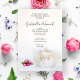 Invités Invitations pour célébrer la mariée et le marié le matin après leur cérémonie de mariage avec l'élégante Teapot with Pink Roses Post Mariage Brunch Invitation. Cette élégante fleurie personnalisée After Mariage Breakfast or Luncheon Invitation présente une photographie botanique d'une théière en porcelaine et des fleurs de rose rose avec du satin blanc. Idéal pour une soirée thé ou un événement thé. Disponible sous forme d'invitation imprimée à l'envoi ou en téléchargement numérique pour un partage numériquement en ligne facile.