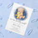 Personnalisez facilement cette magnifique invitation de baby shower de bébé garçon de style élégant. L'invitation est faite par un adorable ours en peluche tenant une étoile jaune devant un arrière - plan en splash bleu foncé. Les mots se lisent "nous pouvons attendre longtemps". Recherchez les articles correspondants dans la boutique.