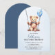 Célébrez le premier anniversaire de votre enfant avec ces invitations à la fête de l'ours en peluche ! L'aménagement comprend un adorable ours en peluche aquarelle pivotant doucement sur une balançoire en bois, tout en tenant un ballon avec le numéro un écrit dessus. Utilisez les outils de conception pour customiser le texte et les polices. Aussi disponible en téléchargement numérique pour invitation.