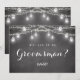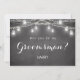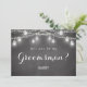 Carte d'invitation 'Black Will you be my groomsman' avec pot Mason, guirlande lumineuse sur fond tableau noir rustique. Utilisez l'option de personnalisation de ce modèle pour modifier le texte des deux côtés. Découvrez notre collection en magasin ci-dessous pour les articles assortis | Utilisez l'option de personnalisation avancée pour modifier le style et la couleur du texte si nécessaire .