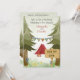 Camping unique Faire-part de mariage boisé avec deux tentes rouges, un feu de camp, des arbres et des fleurs. ^