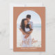 Cette photo en terre cuite rien de fantaisie juste faire-part de mariage d'amour est parfait pour un mariage classique. Le design comporte une élégante police de calligraphie avec une photo en arc dans un arrière - plan en terre cuite. Vous pouvez facilement remplacer la photo actuelle (espace réservé) par la vôtre.