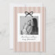 Looking for a sweet and meaningful way to ask a loved one to be your baby's Godmother? This card design is the perfect way to pop the question! Whether you're asking a family member or close friends, this template helps you create a heartfelt moment that they'll treasure forever. This design features a terracotta stripy background and a black bow, along with space for a photo of your choice. You can edit the colour of the stripes, bow and all of the text in this design.