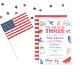 Land of the Free (trois) Stars and Stripes 3ème anniversaire design d'invitation, idéal pour une fête de cuisine ou d'anniversaire d'été lorsque vous êtes susceptible de fêter à l'extérieur.