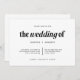 Cette faire-part de mariage ultra moderne en noir et blanc présente une typographie audacieuse avec un mélange de texte serif standard et italique. Le verso de l'invitation comprend un code QR scannable afin que vos invités puissent RSVP en ligne et visiter votre site mariage. Un look simple et élégant qui s'harmonise parfaitement avec votre style mariage moderne.