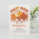 Cute Cartoon Food Friends Dinner Card. Attrapez vos invités pour une réunion festive et amusante avec cette invitation de Thanksgiving "Mode fête" amusante avec d'adorables personnages de dessins animés, dont une dinde, purée de pommes de terre, tarte citrouille, et plus, rassemblés autour d'une table. Avec des couleurs automnales joyeuses et un design léger, cette invitation donne le ton parfait pour un repas de vacances joyeux en famille et entre amis. Entièrement personnalisable avec les détails de l’événement, c’est un choix idéal pour les dîners de Thanksgiving, les fêtes d’Ami ou les fêtes d’automne.