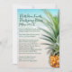 Un thème tropical Thanksgiving, ou Noël, menu familial modèle. Le texte est facile à customiser sur une image d'arrière - plan de mer et de sable. Un seul et grand ananas orne le bord droit du papier. Le texte bleu-vert est aligné sur la gauche avec une place pour le titre, avec le nom de famille / noms en haut. Répertorie tous les éléments de menu d'un paragraphe, qui alignent également à gauche. Si vous le souhaitez, indiquez le nom du cuisinier, boulanger, chef à côté de chaque ligne du menu. Cela pourrait devenir une nouvelle tradition familiale avec des menus pour économiser et se souvenir de chaque jour férié spécial.