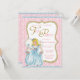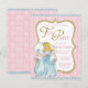 Invitation pour une fête d'anniversaire de thé à la princesse avec une jolie princesse à paillettes bleues sur un fond damassé rose et bleu. Cette invitation de thé à la princesse rose, bleu et or est facilement personnalisable pour votre événement en ajoutant simplement vos détails dans le style de police et la couleur de votre choix. Il s'agit d'une conception imprimée sans véritable paillettage.