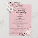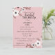 Cette image montre une invitation à une fête de thé de mariage avec un fond rose et un design floral. L'invitation est pour une fête de thé de mariage en l'honneur d'Annabella Ford. L'événement est prévu pour le 10 juillet à deux heures de l'après-midi au restaurant The Pavillion, situé au 2385 rue Asteron, Jackson, MI.