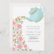 Invitation d'anniversaire avec une bordure de fleurs roses et de verdure qui coule d'une mignonne théière blanche bleue turquoise. Customisez avec vos informations. Cliquez sur "cliquer pour customiser plus loin" pour modifier le style, la taille ou la couleur de la police.