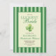 She's the luckiest bride! St. Patrick's day themed, double sided bachelorette weekend invitation with a template for a weekend itinerary. The design features elegant vintage inspired calligraphy, adding a touch of classic sophistication to your announcements. This refined script beautifully complements the overall aesthetic, inviting guests with warmth and style. A backdrop of green stripes offers a serene and inviting canvas, creating a harmonious balance between elegance and charm. This pattern evokes a sense of traditional refinement, perfectly aligning with the old money aesthetic. A delicate watercolor illustration of a four-leaf clovers add a whimsical touch to each piece, artfully arranged to bring a sense of joy and fortune to your celebration, making the bride feel like the luckiest bride on St. Patrick's Day.