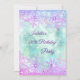 Invitation de fête d'anniversaire sur le thème de l'hiver bleu sarcelle violet rose et argent. Design de flocon de neige en cristal diamant élégant. Veuillez noter : Toutes les images plates, elles ne contiennent pas de véritables bijoux !