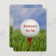 Fermer une balle de golf blanche sur tee rouge dans l'herbe pour l'invitation de la retraite.