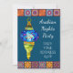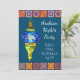 Un design coloré d'une invitation adaptée à une soirée à thème des nuits arabes ou de la danse du ventre. Cette invitation présente des lanternes de mosaïque colorées arabes, moyen-orientales ou arabes turques contre un arrière - plan bleu. Le texte de l'invitation peut être customisé pour inclure vos propres informations.