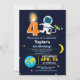 Joli garçon ou fille dans l'espace, astronaute, vaisseau spatial, vaisseau fusée, rocketship, thème de l'espace invitation à la fête d'anniversaire sur la lune jaune et bleu foncé et étoiles arrière - plan motif. Personnalisez ce mignon invitation avec le nom de votre enfant. Dispose d'une bougie de 4e, 4e anniversaire qui peut être personnalisée selon l'âge de votre enfant. Parfait pour les premiers, 1er, anniversaire, tout-petits, jeunes enfants ou plus âgés. Grande année pour les fêtes d'anniversaire du printemps, de l'été, de l'automne ou d'hiver.