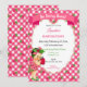 Invitation Thème Fraise Fille Gingham Rose Vert