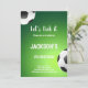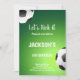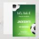 Commencez la fête avec cette invitation énergique "Let’s Kick It" pour l’anniversaire du football! Conçue avec un arrière - plan vert audacieux et un agencement sportif, cette carte personnalisable est parfaite pour les enfants qui aiment le football. Personnalisez facilement les détails de votre fête en utilisant les outils d’édition intuitifs de Zazzle. Un choix amusant et moderne pour des anniversaires sur le thème du football et des fêtes d'équipe.