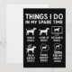Funny dog lover quote with playful icons about walking dogs, looking at dogs, researching dogs, talking about dogs, thinking about dogs and dreaming about dogs. Ideal for dog fans who enjoy humor.