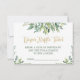 Une façon élégante de demander aux invités d'apporter des couches à la fête prénatale avec ces tickets de tombola de couches. Une verdure simple mais élégante et des feuilles vertes avec des lettres dorées.