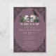 Cet élégant gothique "Til Death Do Us Part" irlandais invitation à la douche nuptiale présente des illustrations à thème irlandais & gothique dessinées à la main à l'encre noire, présentant 2 crânes et une corneille noire ornée de roses verts, feuilles, baies, fleurs sauvages et trèfles verts. Le dos est orné d'un beau motif avec ces éléments. Élégant arrière - plan prune violet. Tout le texte est modifiable.