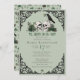 Cet élégant gothique "Til Death Do Us Part" irlandais invitation à la douche nuptiale présente des illustrations à thème irlandais & gothique dessinées à la main à l'encre noire, présentant 2 crânes et une corneille noire ornée de roses verts, feuilles, baies, fleurs sauvages et trèfles verts. Le dos est orné d'un beau motif avec ces éléments. Élégant arrière - plan vert sauge. Tout le texte est modifiable.