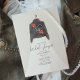 Thème de douche nuptiale avec illustration d'une veste en cuir avec coeur "Til Death" et motif floral coquelicot sur cintre avec une robe mariage.