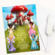 Un modèle d'invitation à l'anniversaire d'une princesse féerique. Le design magique présente un chateau de toadstool rouge vif entouré de princesses de fées aux couleurs arc-en-ciel avec des étincelles magiques. Personnalisez en éditant l'invitation numérique ou imprimé avec vos détails uniques.