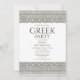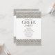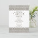 Invitation d'anniversaire de fête Toga inspirée de la clé grecque avec des éléments de pierre. Parfait pour votre événement sur le thème de la Grèce antique ou de la Rome antique !