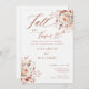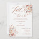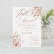 Un modèle romantique, élégant, classe et moderne d'invitation de fiançailles pour les mois d'automne - Septembre, Octobre, Novembre. Il présente une calligraphie de script moderne et élégante et le titre "tomber amoureux" et un arrangement floral chic rustique de feuilles d'automne et roses avec une terre cuite, teinte orange brûlée. Luxueux mais simple, classique mais chic, moderne mais intemporel. Un très beau choix pour une soirée de fiançailles automne avec du cuivre, de l'orange brûlé, de la terre cuite, du beige, du rouge, de l'orange et d'autres teintes automnales.