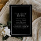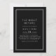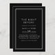 Cette nuit avant la répétition dîner invitation de l'Avery Suite dispose d'un arrière - plan noir foncé, un cadre blanc mince double et propre sans serif type. Il crée un look moderne et poli, adapté aux lieux de la ville, aux galeries et aux mariages du soir.