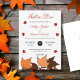 Cette élégante invitation mariage de automne est parfaite pour un mariage d'automne moderne. Le design simple présente des feuilles avec une élégante typographie noire et rouge sur un arrière - plan blanc