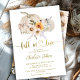 Invitation à la douche nuptiale rustique et élégante avec citrouilles blancs aquarellés à la main, marguerites et tournesols avec libellé "tomber amoureux" doré et motif floral à l'arrière. Contactez-nous par conversation si vous avez besoin de personnalisation ou de correspondances.