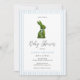 Elegant and preppy hand painted watercolor Topiary Bunny boy Baby Shower invitation with blue pinstripe border perfect for spring/ summer baby shower.