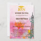 Cette élégante invitation met en valeur l'icône de la Tour Eiffel ornée de délicates fleurs aquarelles rose pâle et blanches, complétées par de luxuriantes feuilles vertes. Le mot "Paris" est affiché avec élégance dans une typographie moderne. La couverture arrière présente des rayures noires et blanches stylisées, ajoutant une touche de sophistication. Personnalisez cette annonce de remise de diplôme pour un diplômé en pharmacie/toxicologie ou un autre programme pharmaceutique, et faites-en votre propre pour partager la nouvelle ou inviter d'autres personnes à une célébration.