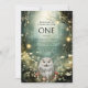 Wild un thème enchanté forêt bois forêt 1er anniversaire invitation pour les garçons ou les filles. Un hibou forestier magique parmi les fleurs et les lumières brillantes. Personnaliser pour une fille ou un garçon. Disponible en version imprimée, en téléchargement numérique ou les deux.