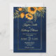 bleu marine mariage de automne avec tournesol jaune verdure bleu marine arrière - plan cadre or modèle fleuri faire-part de mariage tout en un avec le code RSVP QR à l'arrière.